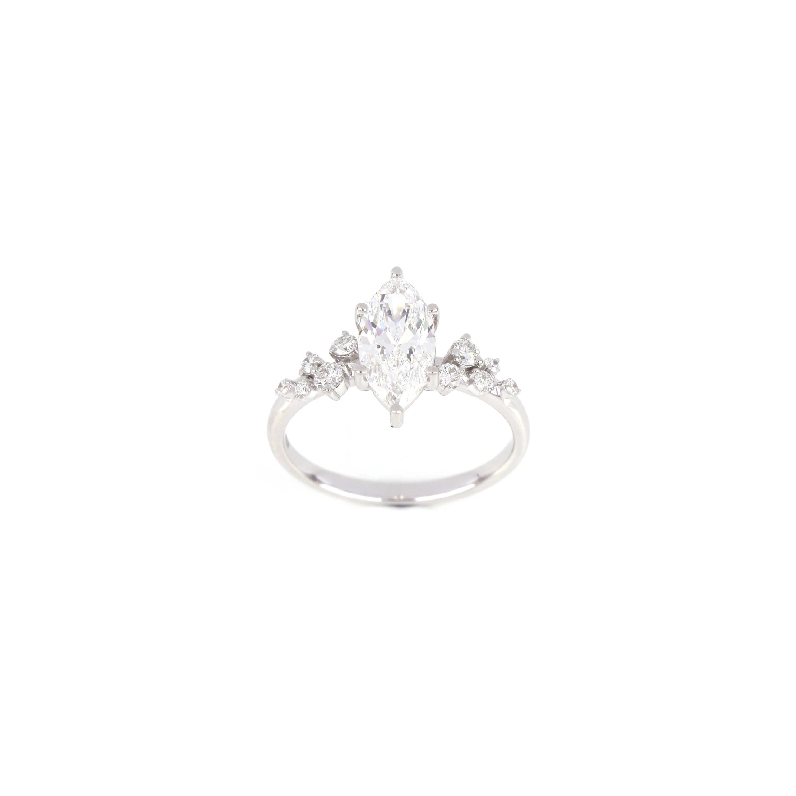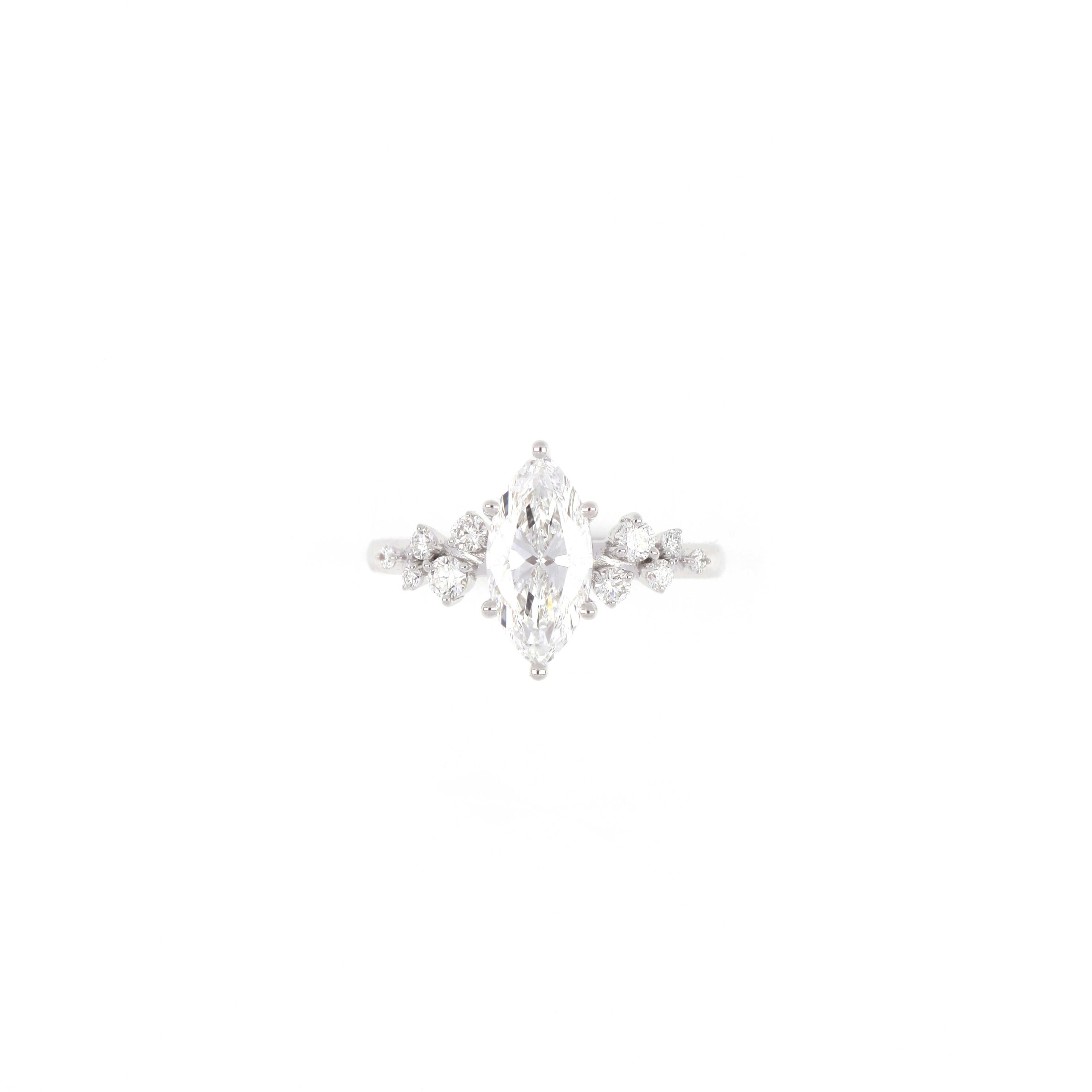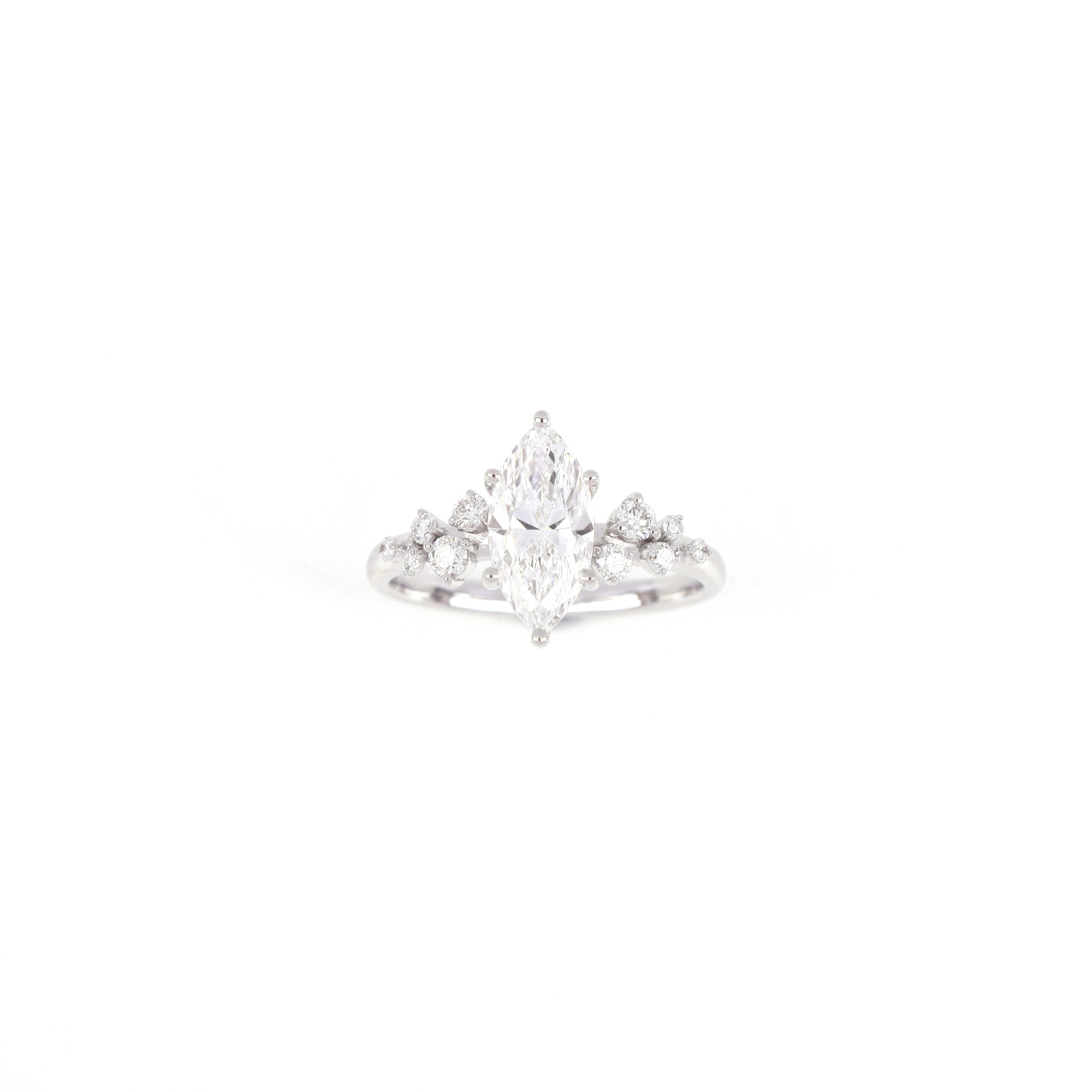 Inspired by royal elegance, this ring features a prominent marquise-cut center gem crowned with clustered round diamonds. A balanced mix of sophistication and sparkle, this piece is perfect for those who want their ring to feel majestic and romantic.