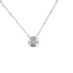 With a contemporary circular pendant featuring a central round-cut diamond, this necklace blends classic sparkle with modern design. A polished silver chain completes the look, making it a standout piece for any jewelry lover.