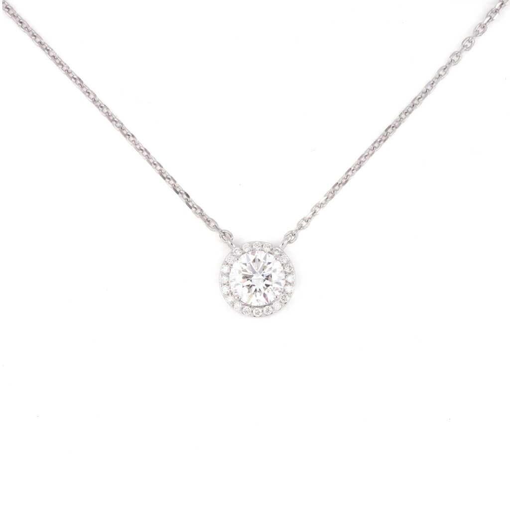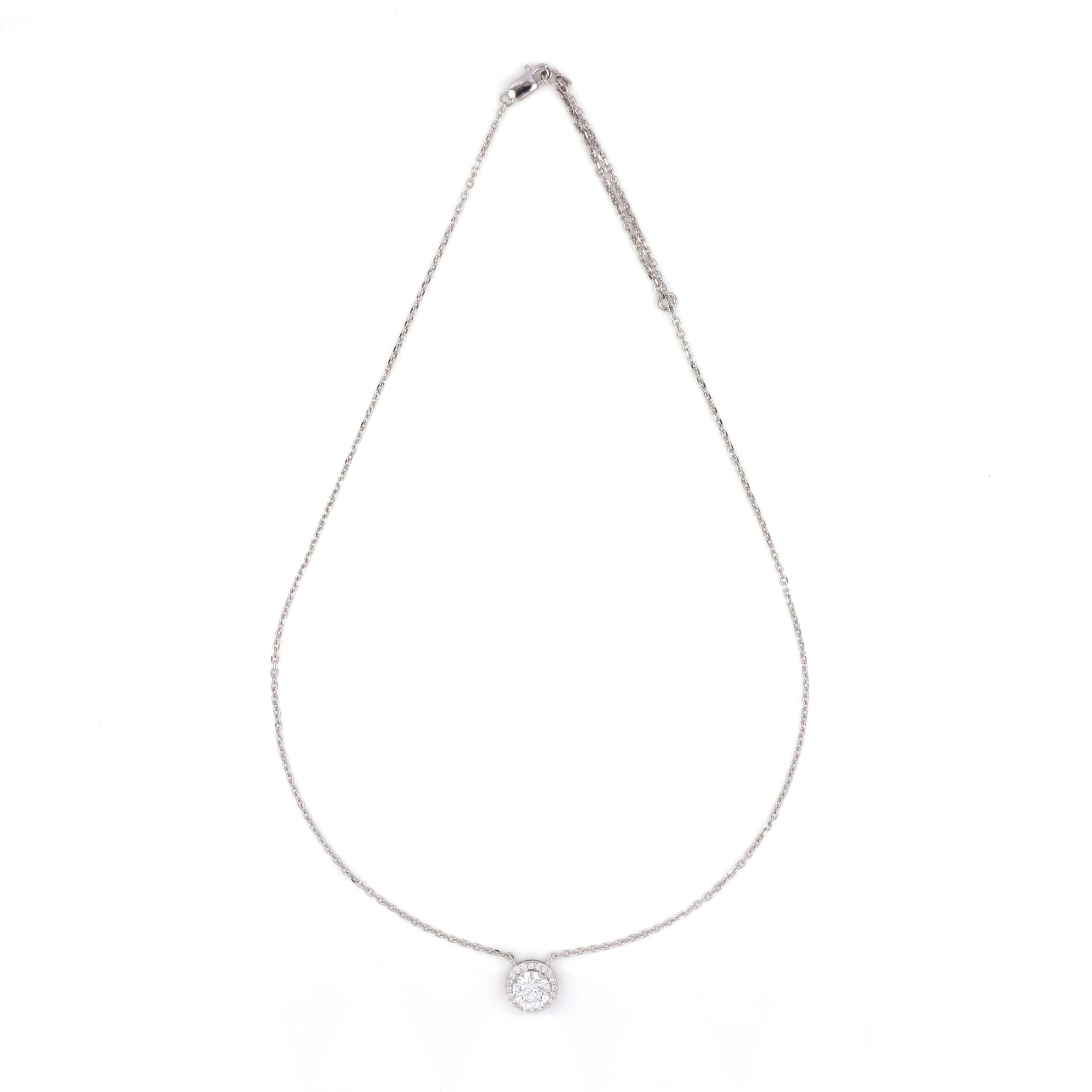 Sleek circular diamond necklace.