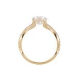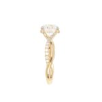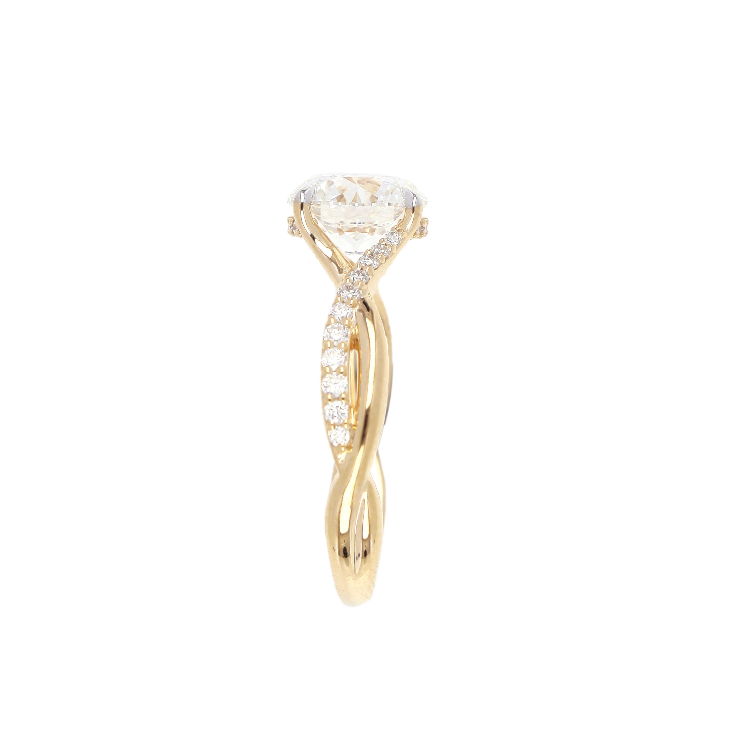 A true beauty, this ring features a brilliant round center stone elevated by a sleek band, accentuated by a hidden halo underneath. The sparkle continues along the shoulders of the band, adding depth and detail. This piece blends classic grace with modern sophistication for everyday elegance or special moments.
