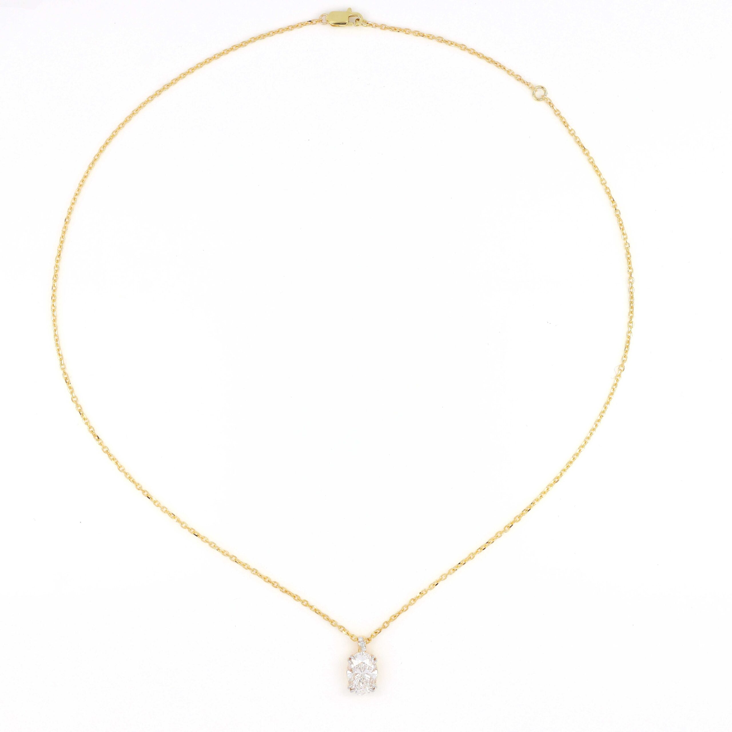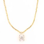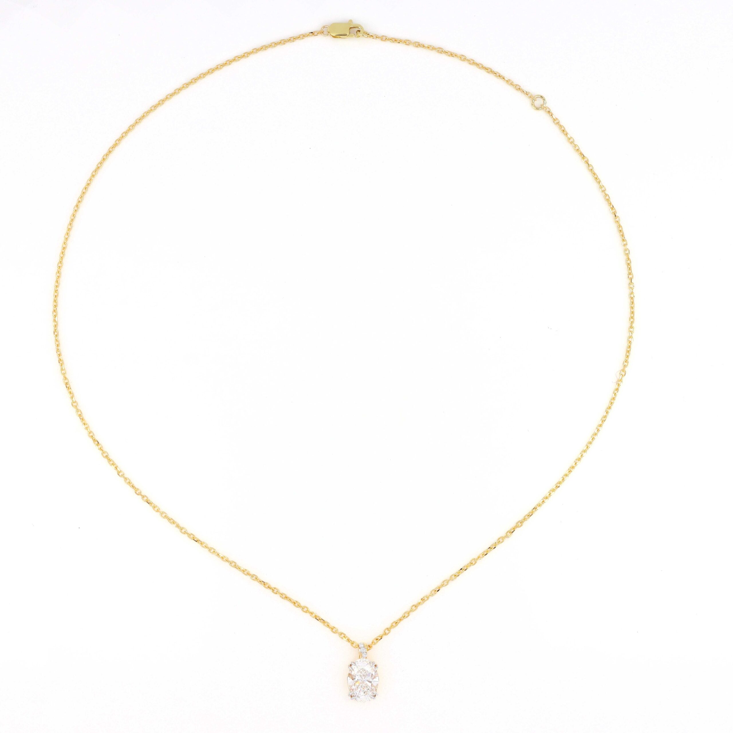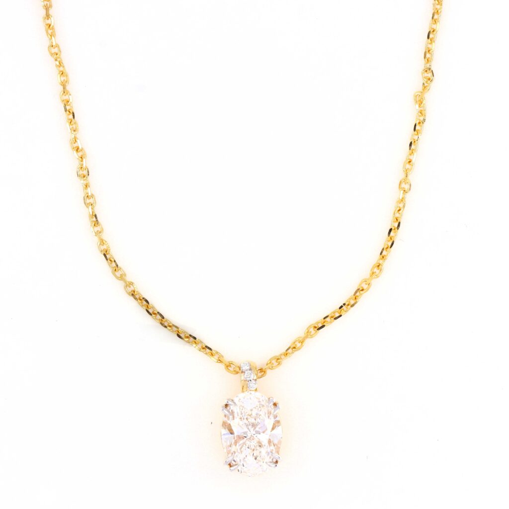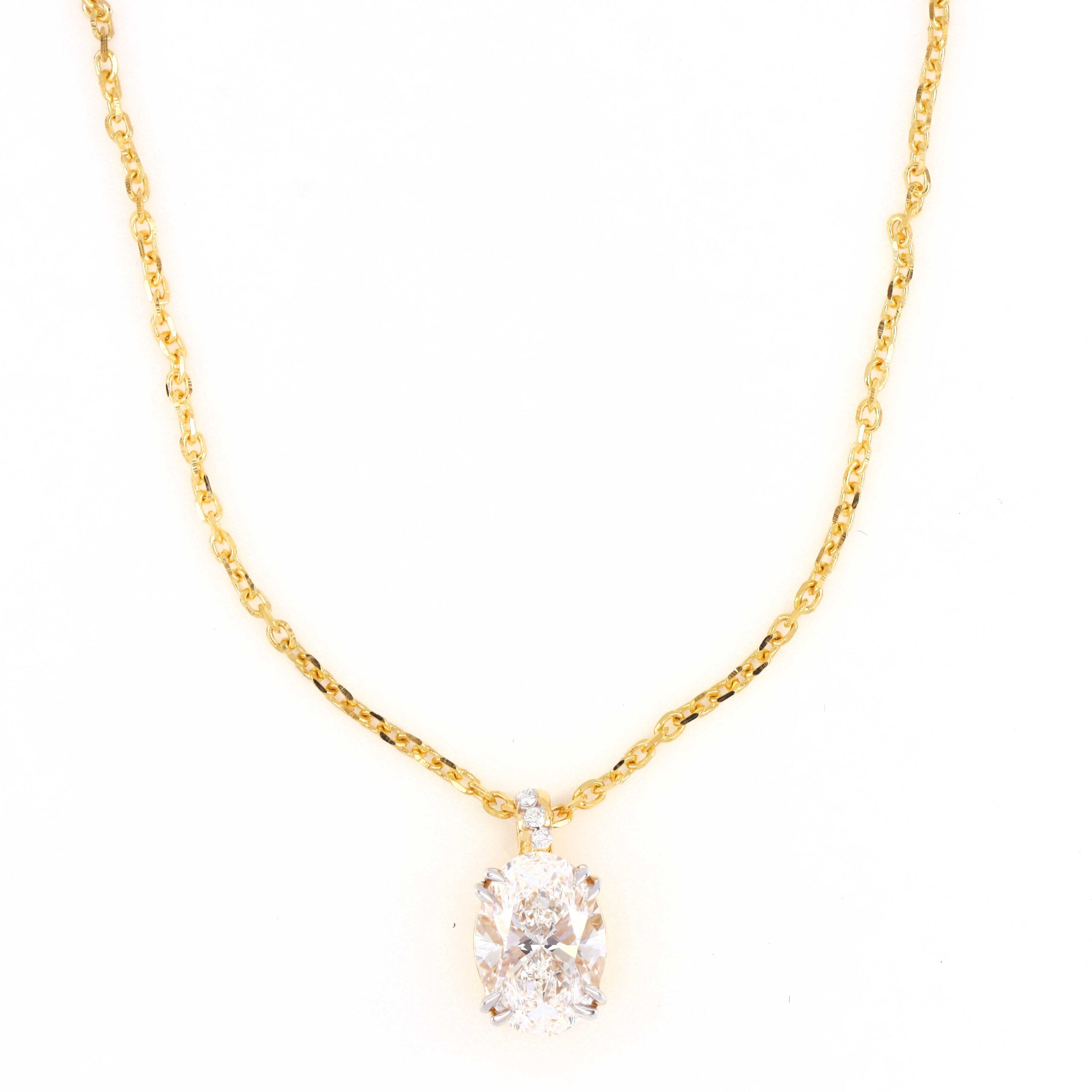 Refined and radiant, this pendant necklace features a sparkling oval-cut diamond suspended from a dainty gold chain. The delicate bail is accented with a tiny round diamond, enhancing the pendant’s brilliance. Whether worn alone or layered, this piece adds timeless sparkle to any look.