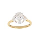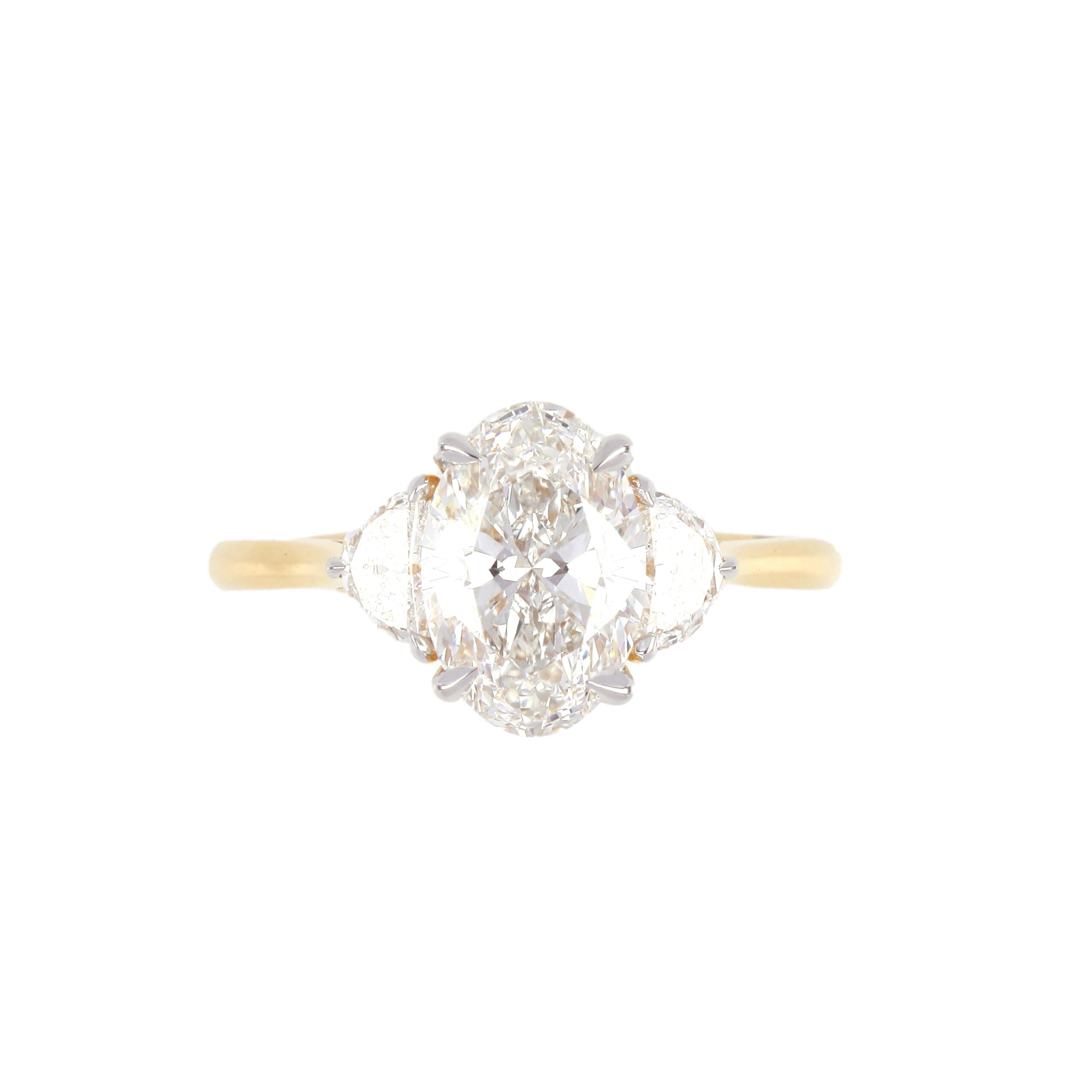 This elegant oval solitaire ring features a stunning 2-carat diamond gracefully set in a secure prong setting, allowing maximum light to pass through for optimal brilliance. The diamond is beautifully elevated on a minimalist and polished yellow gold band, offering a timeless silhouette perfect for everyday elegance or life’s most cherished moments. This ring’s clean, modern design highlights the natural beauty of the oval-cut diamond, making it an ideal choice for engagements, anniversaries, or as a luxurious statement piece.