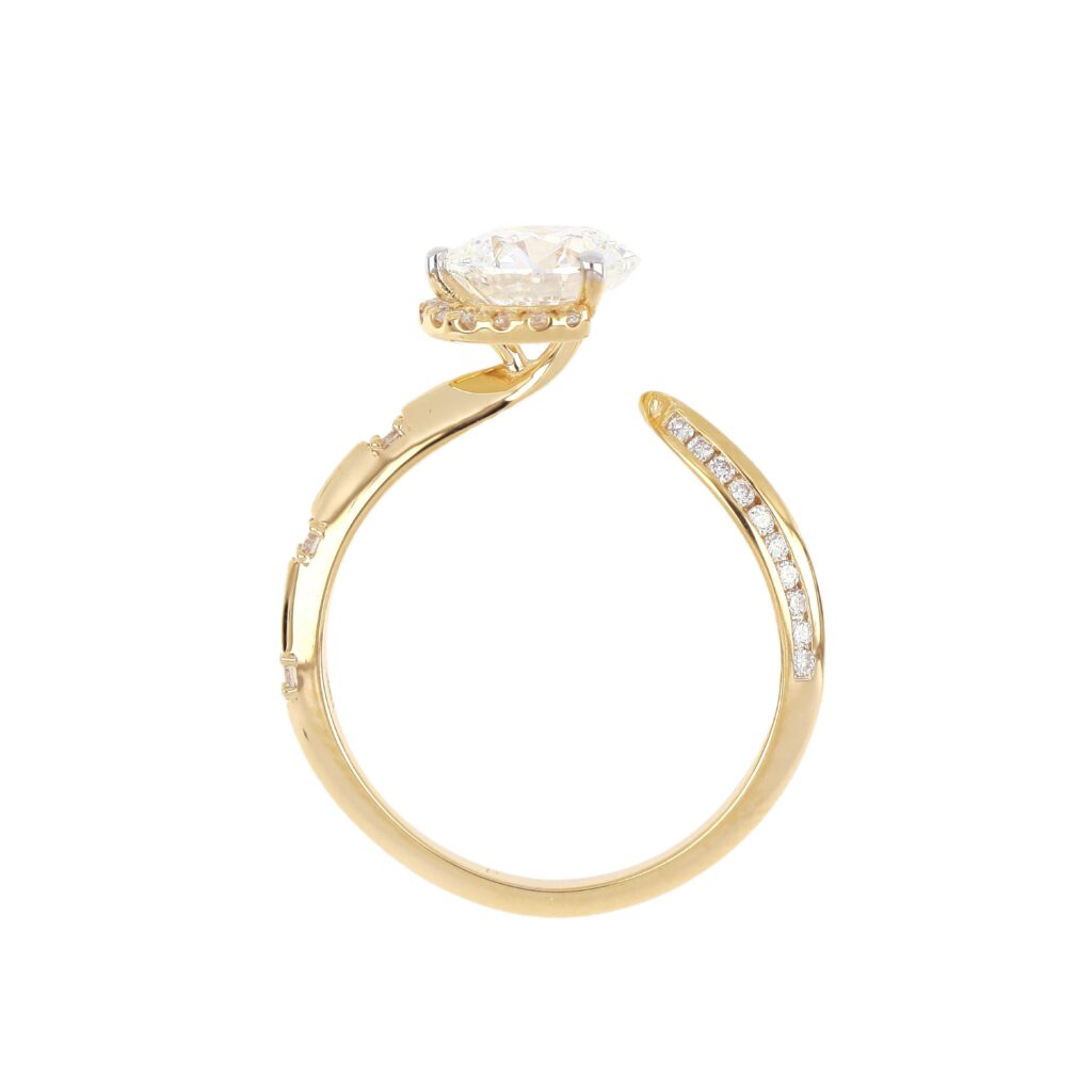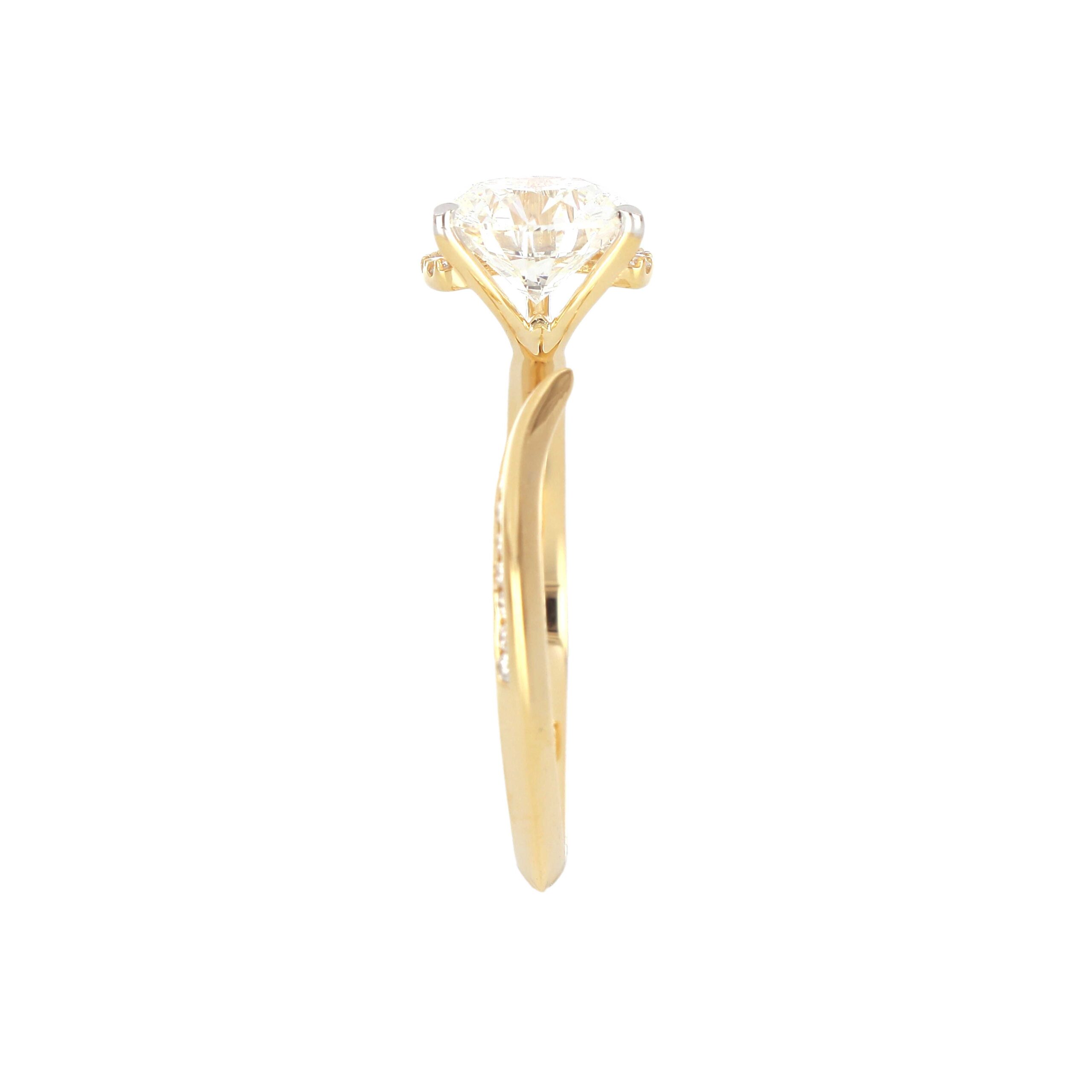 This swirl solitaire ring captivates with its unique design—an open, fluid band that curves gently to cradle a sparkling round stone. It combines modern minimalism with graceful elegance, ideal for those who appreciate artistic design in their jewelry. A bold piece that blends simplicity with sophistication.