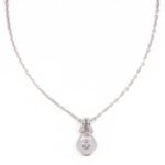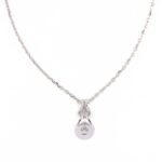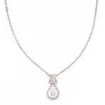 This exquisite teardrop-shaped pendant showcases a round brilliant-cut center diamond framed by a halo of shimmering stones. Suspended from a delicate silver chain, it radiates timeless sophistication — perfect for adding elegance to both everyday wear and special occasions.